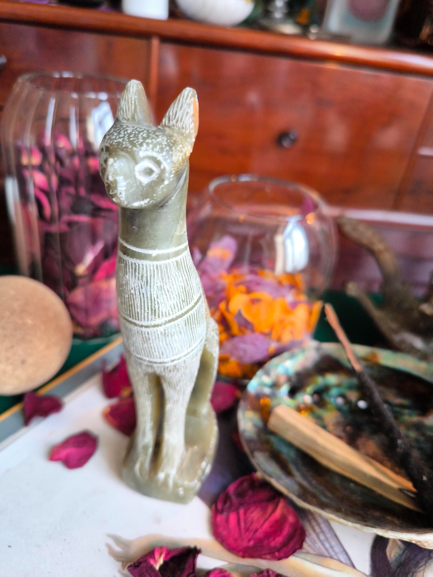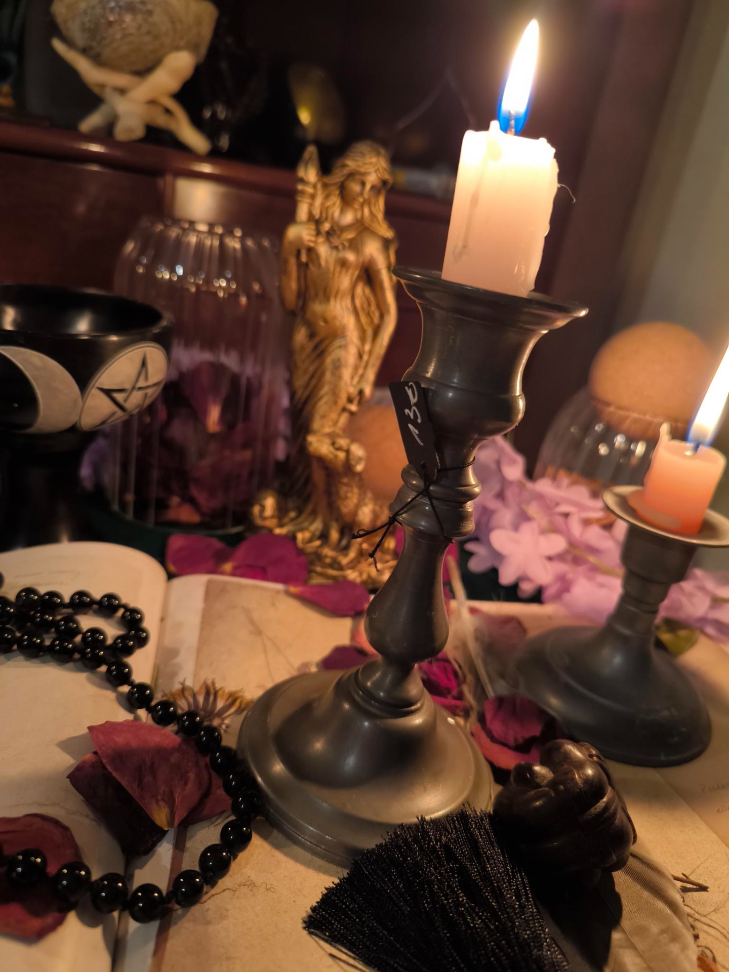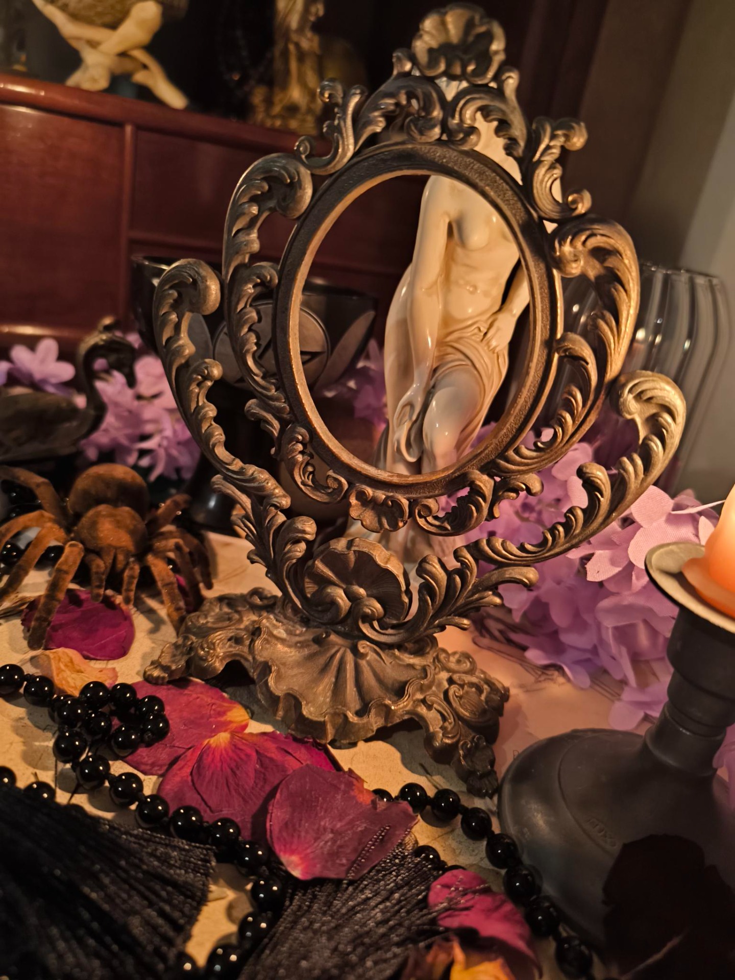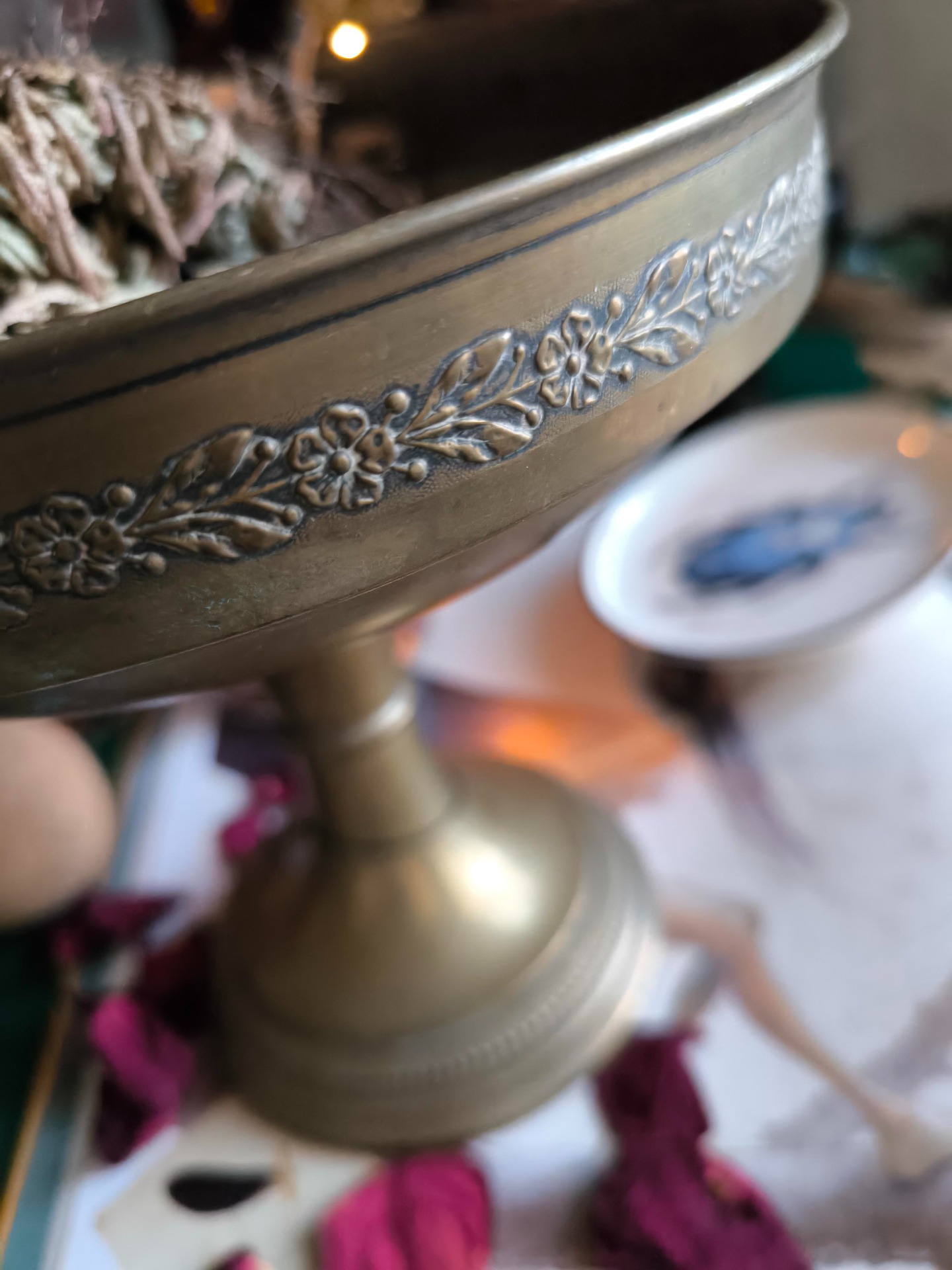Rien n'est vide, rien n'est neutre : chaque pièce a déjà vécu, chaque objet a son passé. Arrivés chez moi, ils sont purifiés, bénis, enveloppés de lumière afin d'être prêts à reprendre leur voyage et à trouver leur place sur vos autels, dans vos rituels, vos offrandes,vos libations. vos élans de passion.