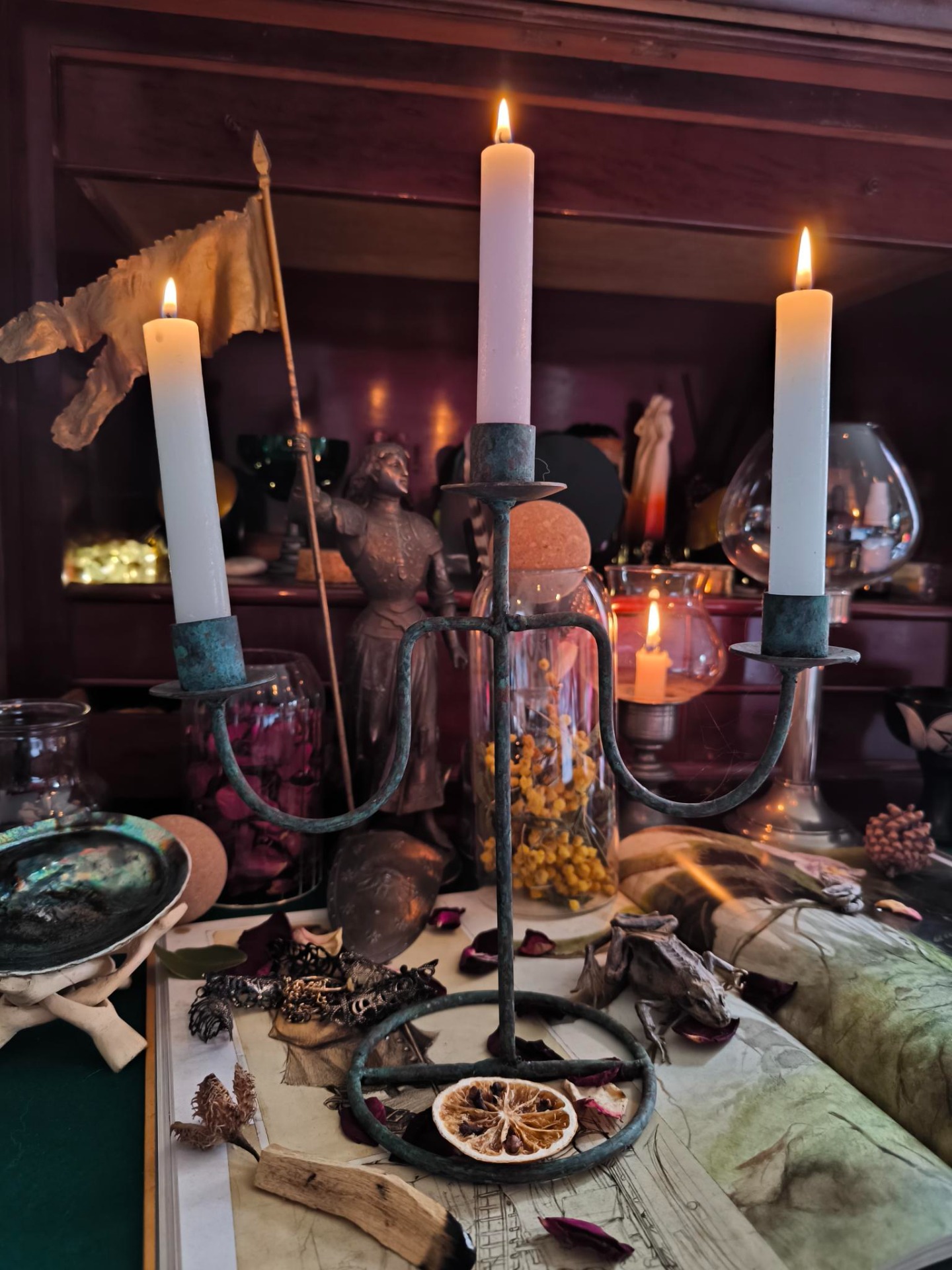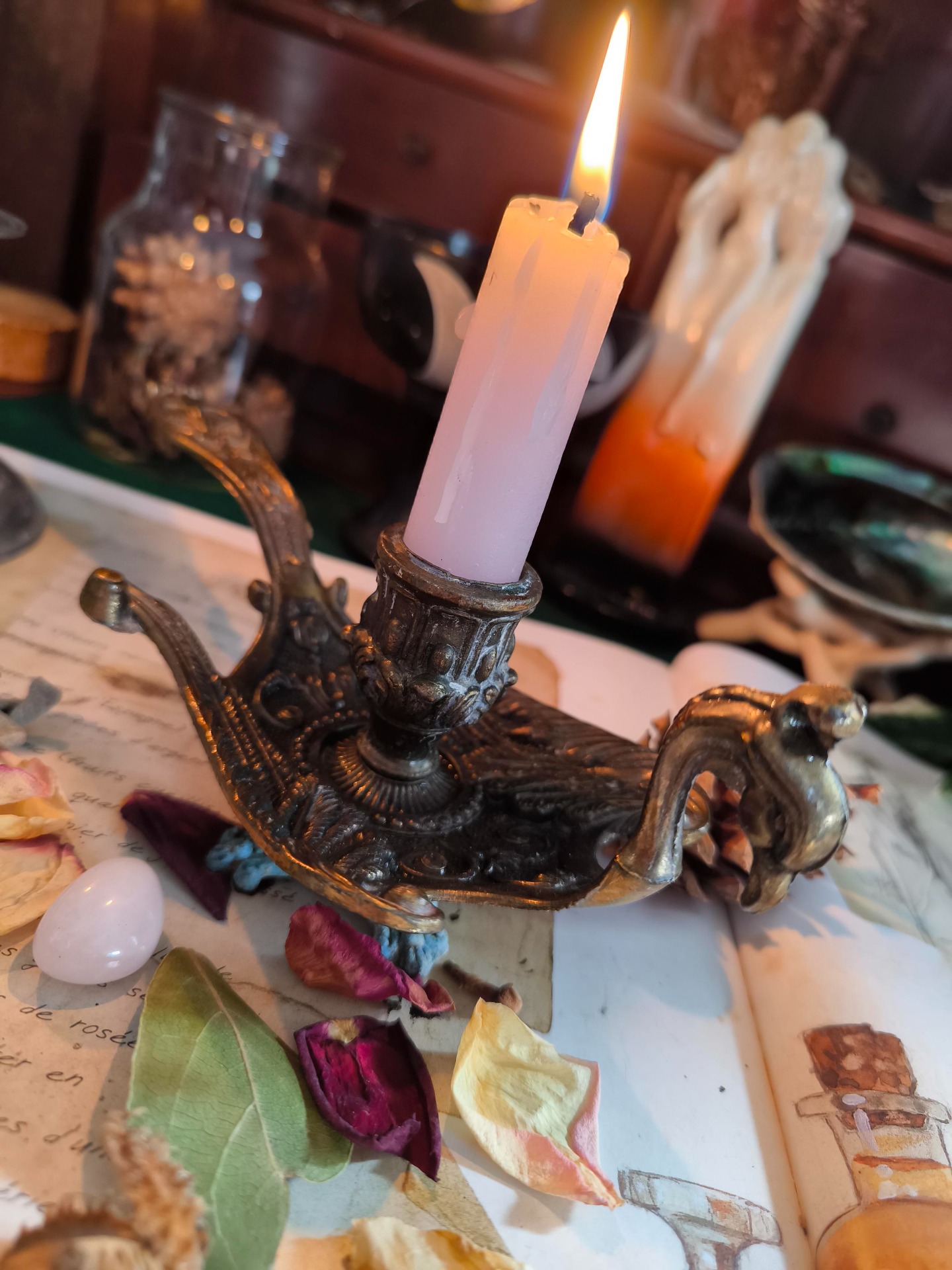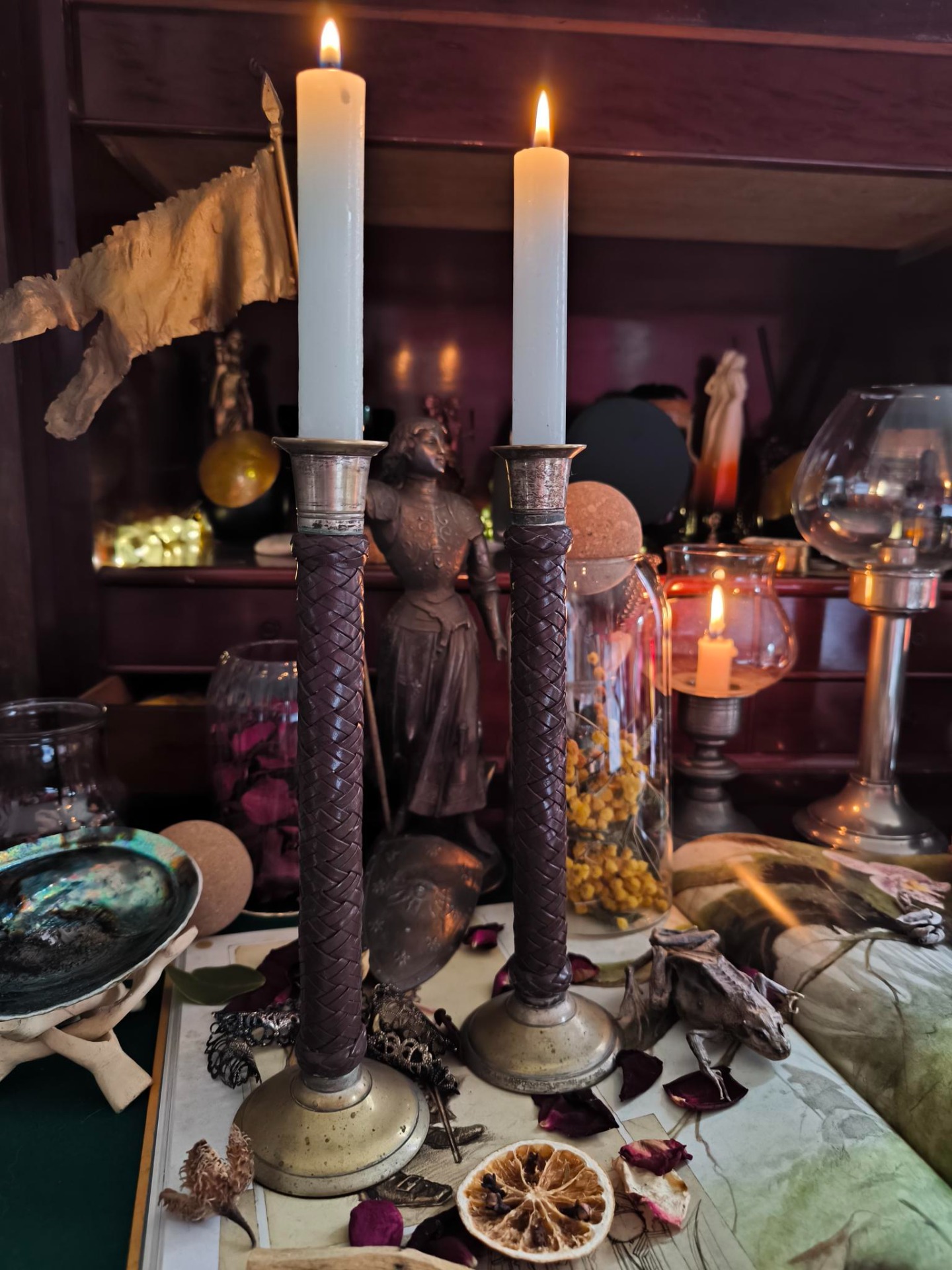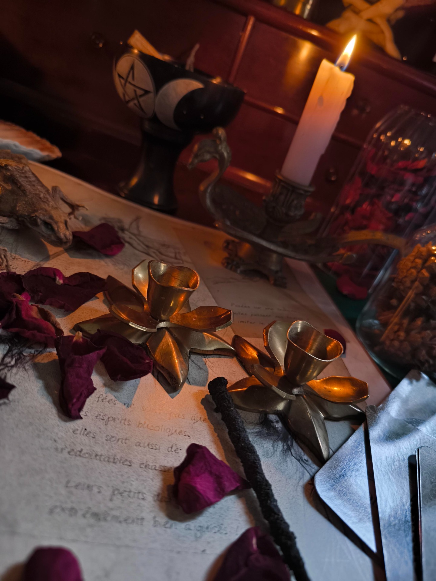 Rien n'est vide, rien n'est neutre : chaque pièce a déjà vécu, chaque objet a son passé. Arrivés chez moi, ils sont purifiés, bénis, enveloppés de lumière afin d'être prêts à reprendre leur voyage et à trouver leur place sur vos autels, dans vos rituels, vos offrandes,vos libations. vos élans de passion.