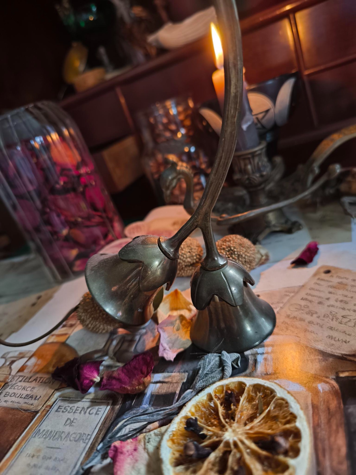 Rien n'est vide, rien n'est neutre : chaque pièce a déjà vécu, chaque objet a son passé. Arrivés chez moi, ils sont purifiés, bénis, enveloppés de lumière afin d'être prêts à reprendre leur voyage et à trouver leur place sur vos autels, dans vos rituels, vos offrandes,vos libations. vos élans de passion.