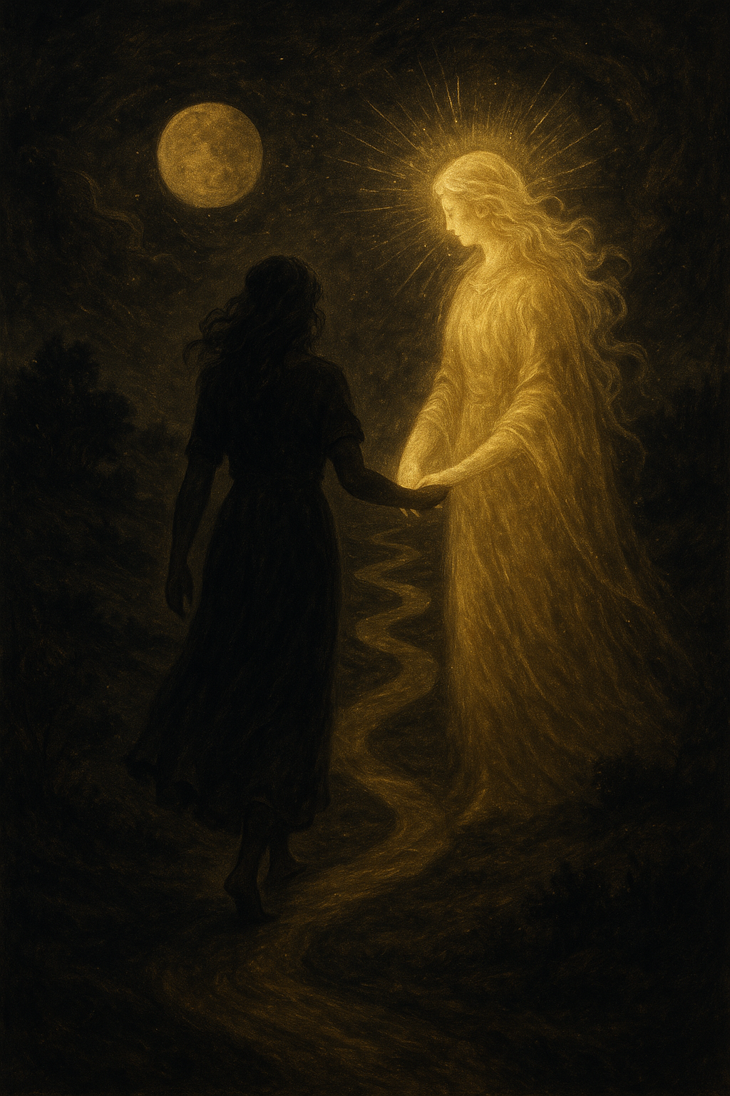 Tu seras guidée à travers une méditation-voyage, un passage intérieur où les mondes s'effleurent. Tu avanceras dans un paysage tissé de symboles, de murmures, d'éclats anciens… jusqu'à sentir la présence d'une déesse qui t'attendait déjà.