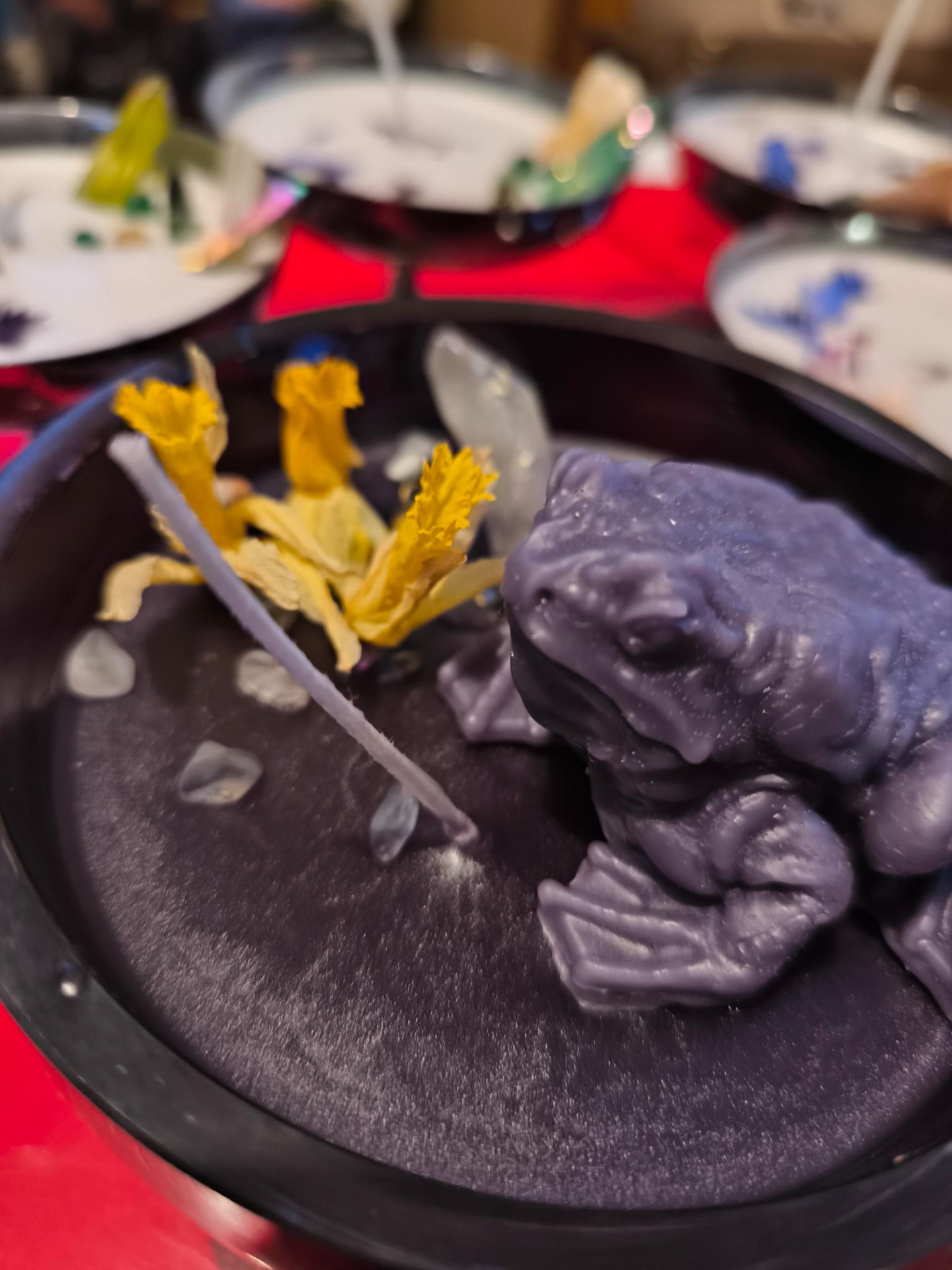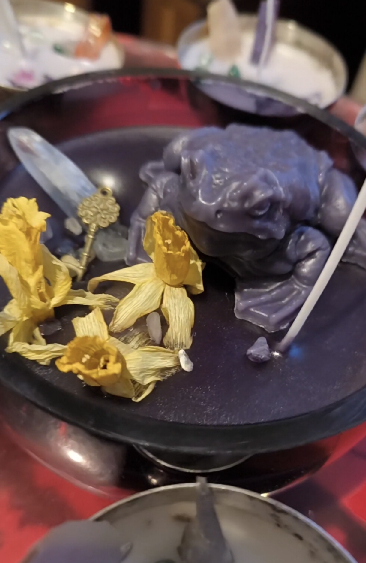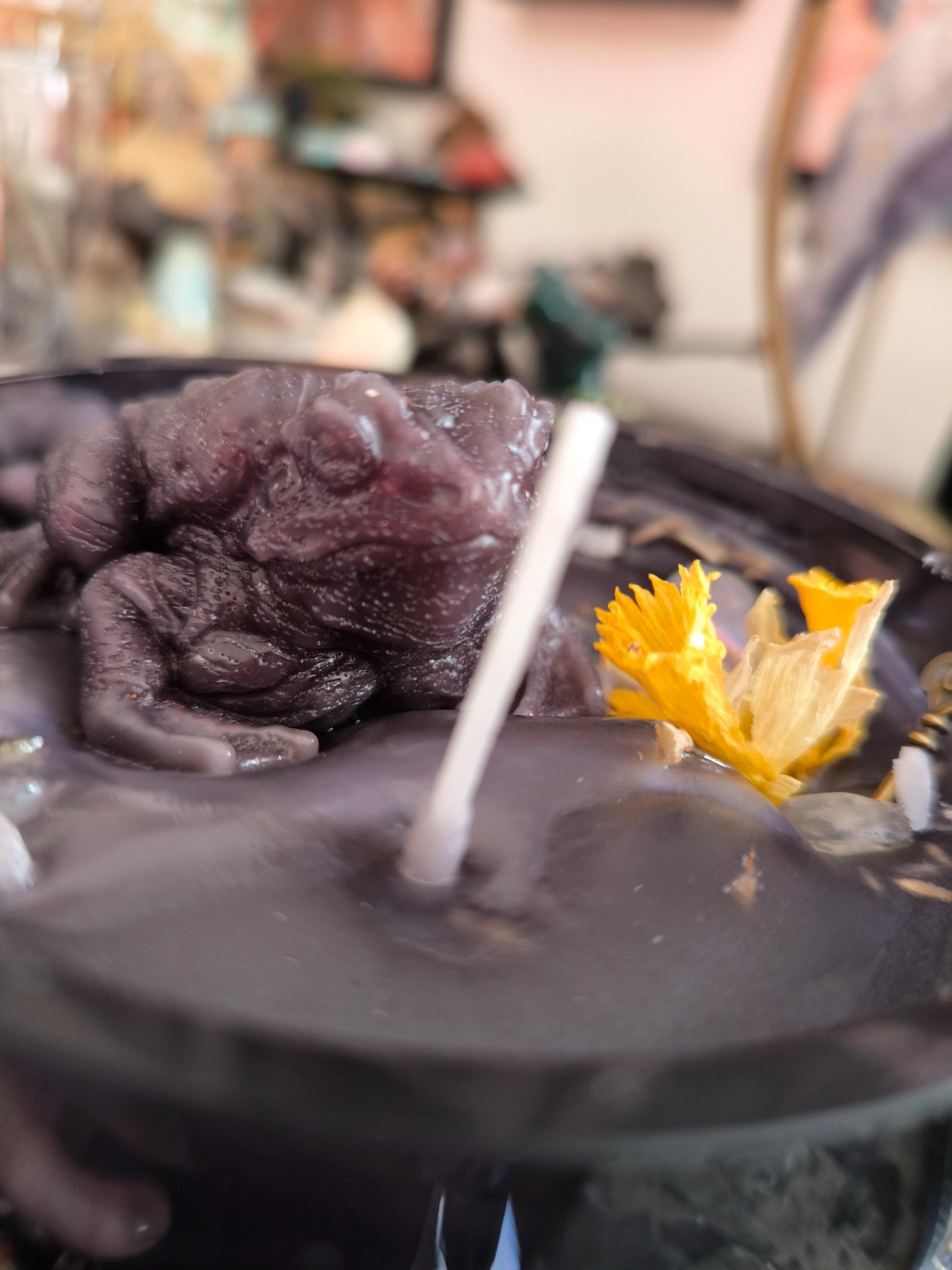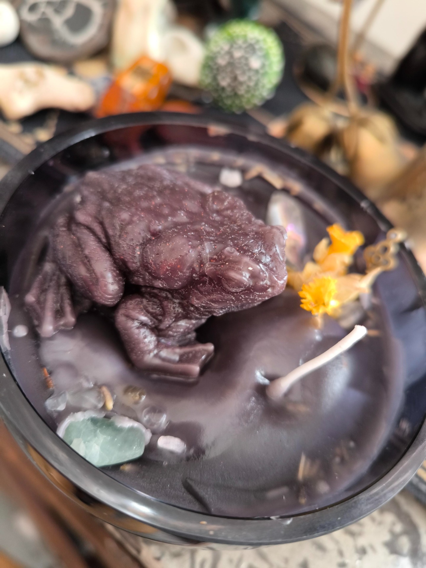 Le petit crapaud, gardien discret des eaux et des secrets, trône ici comme un symbole de transformation et de protection.