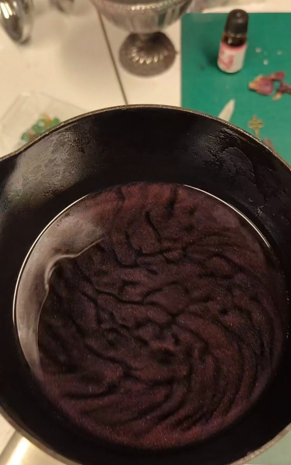 Quelques gouttes d'huile essentielle de rose viennent unir tout cela dans une vibration d'amour ancien et de douceur ensorcelée.