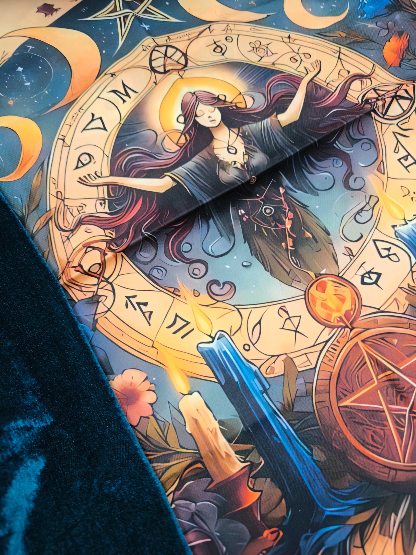 Un cercle qui voyage avec vous, un compagnon de route pour vos quêtes mystiques, un autel nomade qui s’ouvre comme une porte dans chaque lieu où vous le posez.