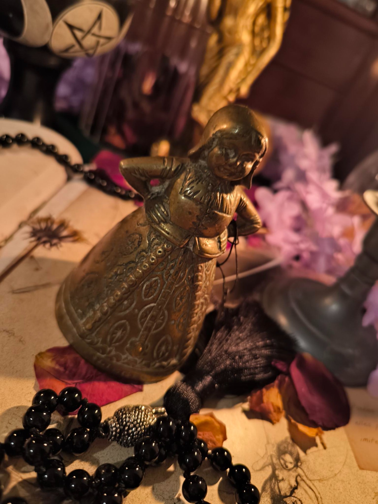 Quand on l'agite, son tintement clair ouvre l'espace, chasse les énergies lourdes et appelle la douceur. C'est la clochette idéale pour commencer un rituel, purifier un autel, ou simplement inviter un peu de magie dans le quotidien.