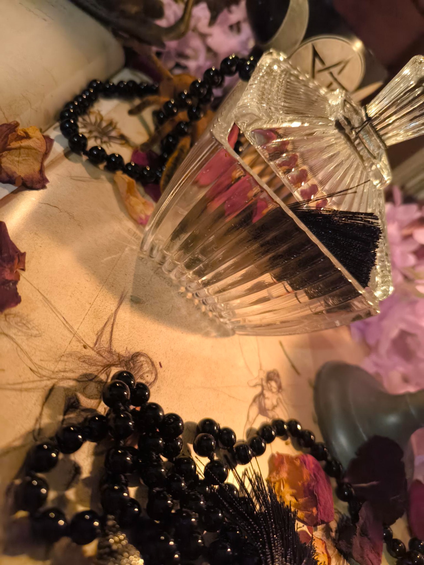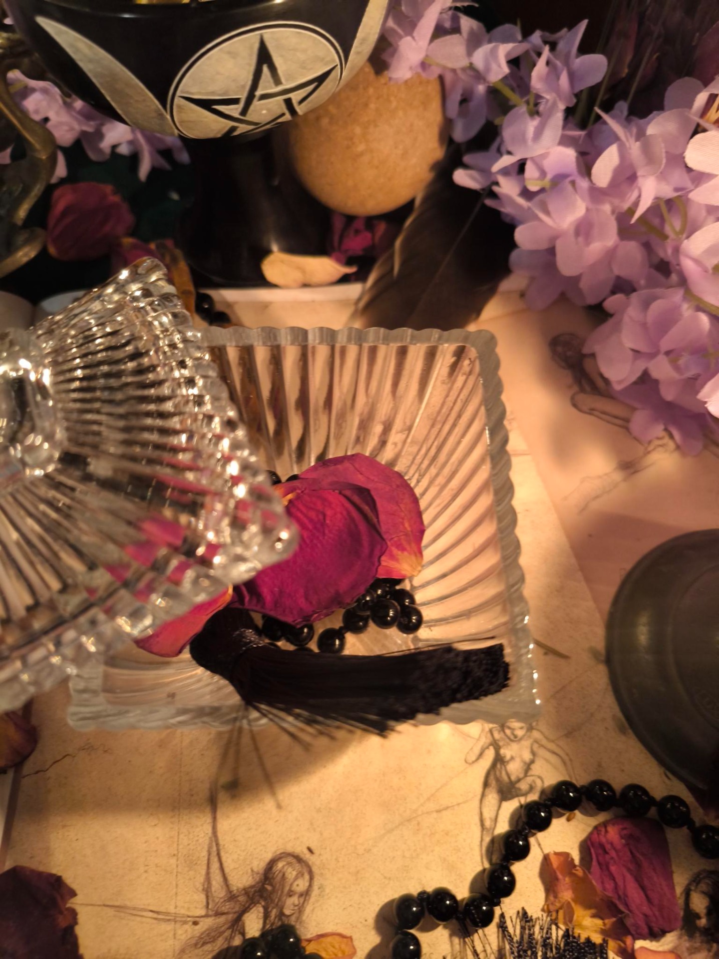 On y dépose le sel d'ancrage, les pierres de force ou les herbes de la Terre-Mère.
