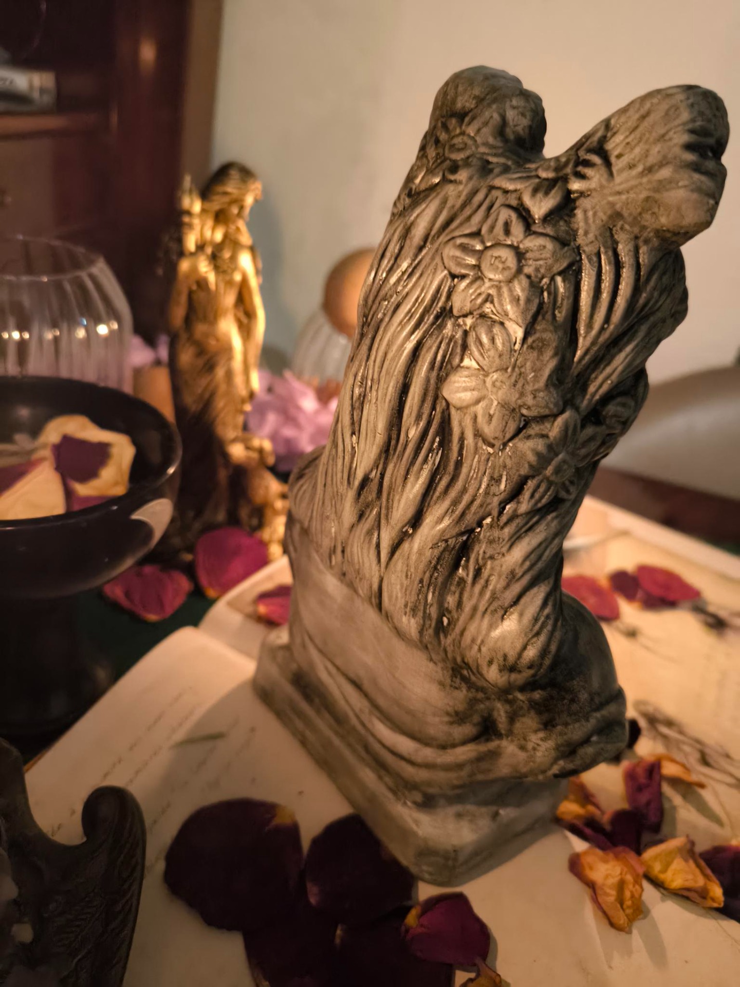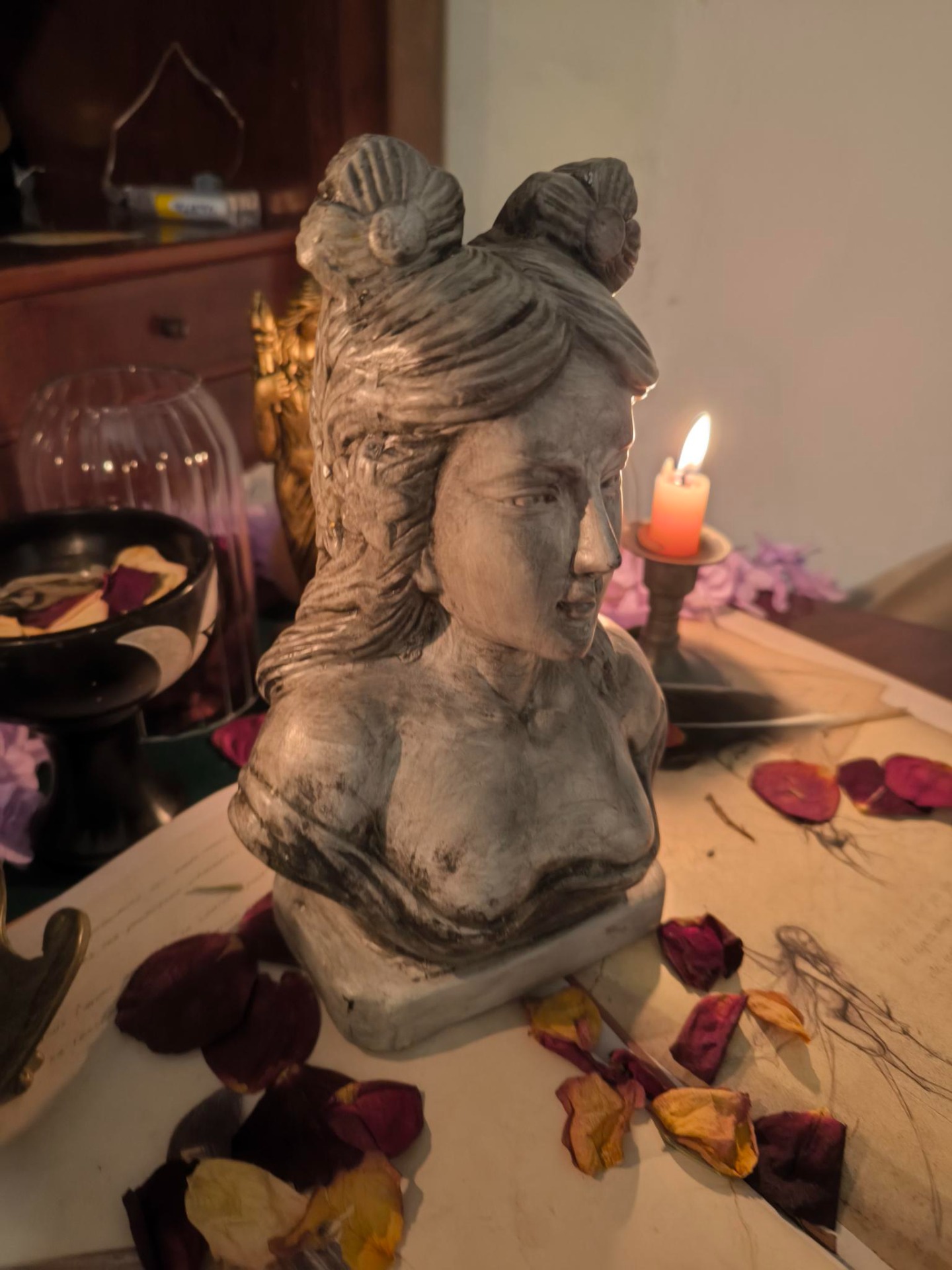 Placée sur un autel, elle invite à célébrer la vie, la croissance, la créativité — tout ce qui s'ouvre et s'épanouit.