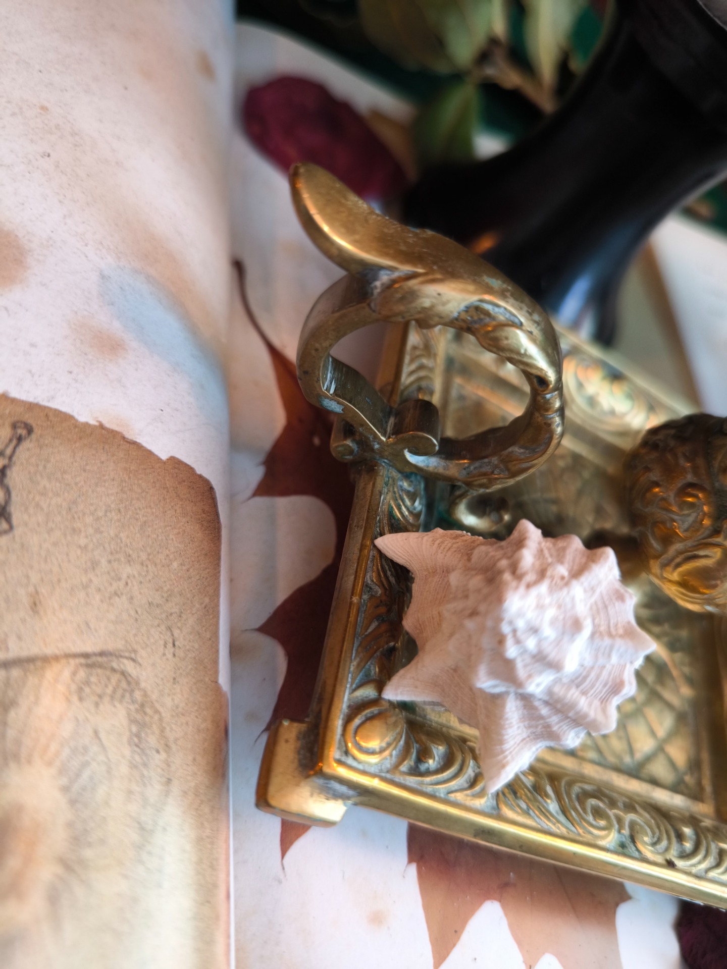 Délicatement façonné en laiton, ce bougeoir semble tout droit sorti d'un palais caché dans les forêts anciennes.