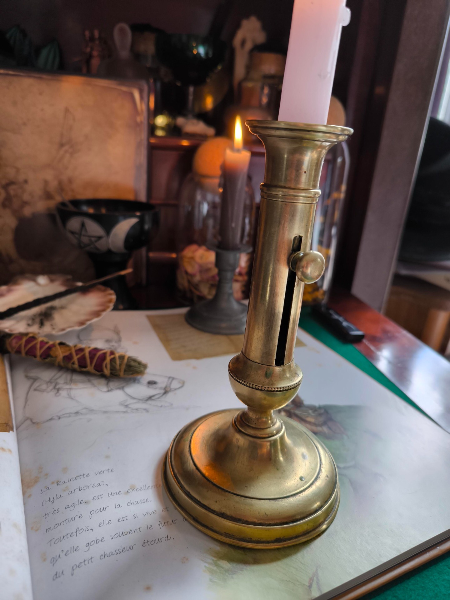 Dans le silence des nuits, il élève la flamme pas à pas, soutenant sa lumière jusqu'au dernier souffle de cire. Chaque mouvement de sa tige rappelle la marche du temps, lente et inéluctable. Fidèle compagnon des ombres, il guide les pas dans l'obscurité, offrant à l'âme un phare discret, une lueur de persévérance.Veilleur des heures secrètes, il éclaire non seulement le chemin, mais aussi les pensées.