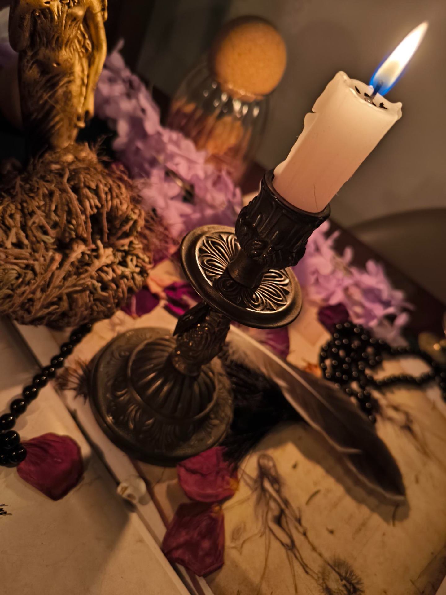 Il est parfait pour éclairer un autel, un rituel ou une table de célébration, où la lumière devient offrande et la cire, prière.