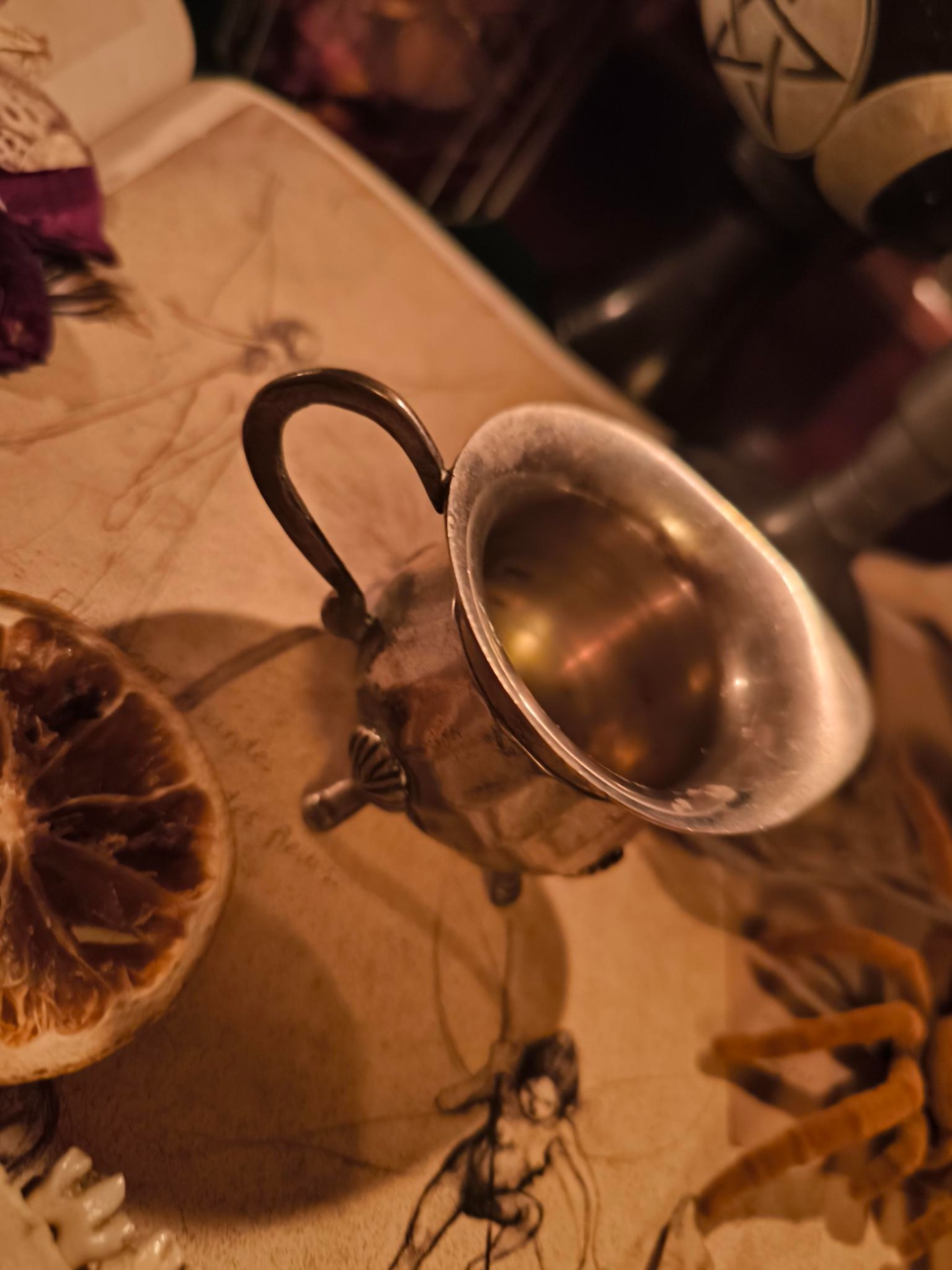 Petit et raffiné, ce pichet gravé porte en lui l’art des offrandes délicates. Son bec verseur semble fait pour déposer quelques gouttes d’eau de lune, de vin sacré ou de lait doux, en hommage aux déesses de la fertilité, de la beauté et de la douceur. Il accompagne les rituels d’amour, de bénédiction et de gratitude.