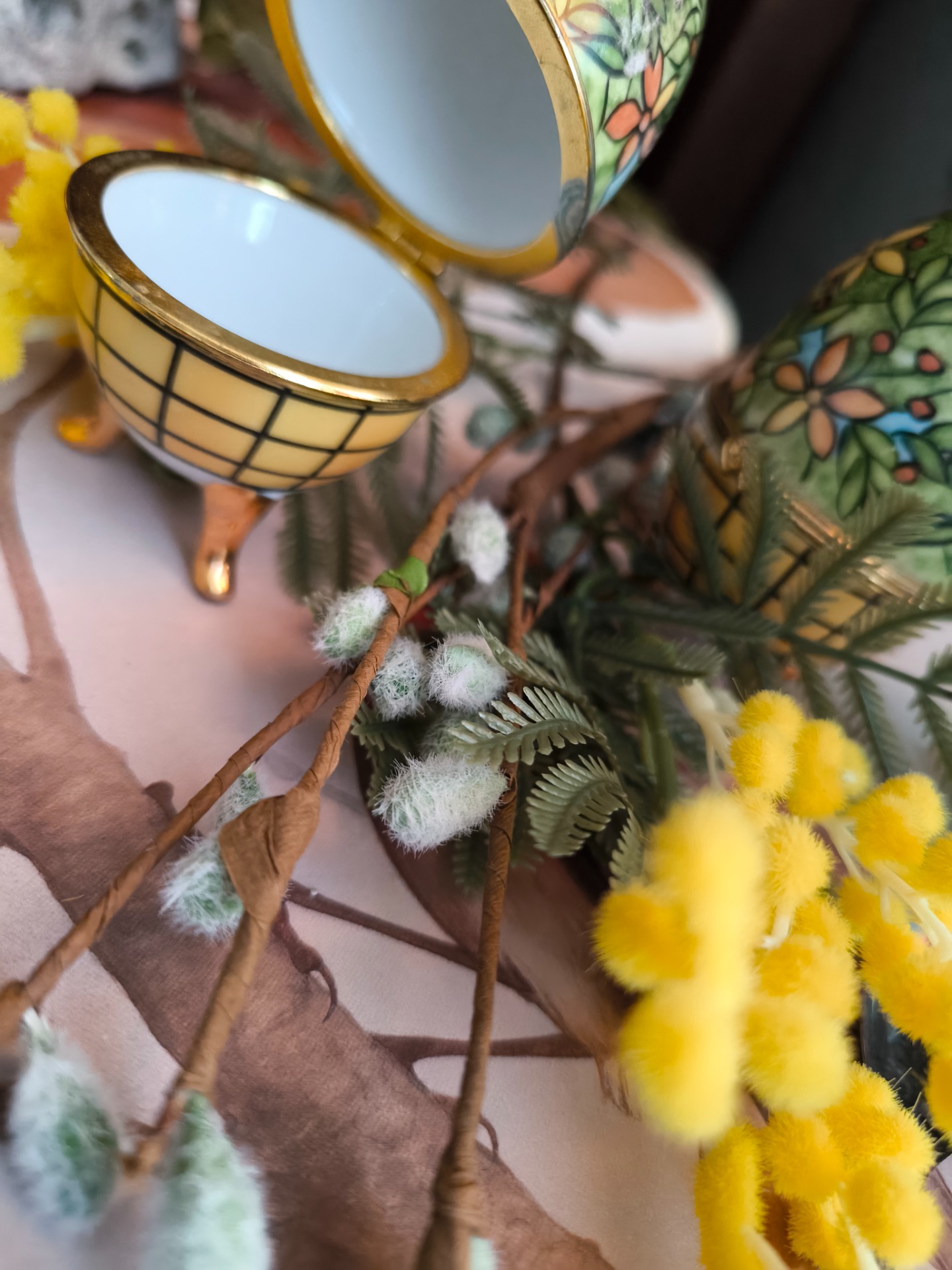 Leur porcelaine délicate, ornée de fleurs et de feuillages, évoque les jardins qui s'éveillent lorsque la lumière reprend sa place sur la Terre.