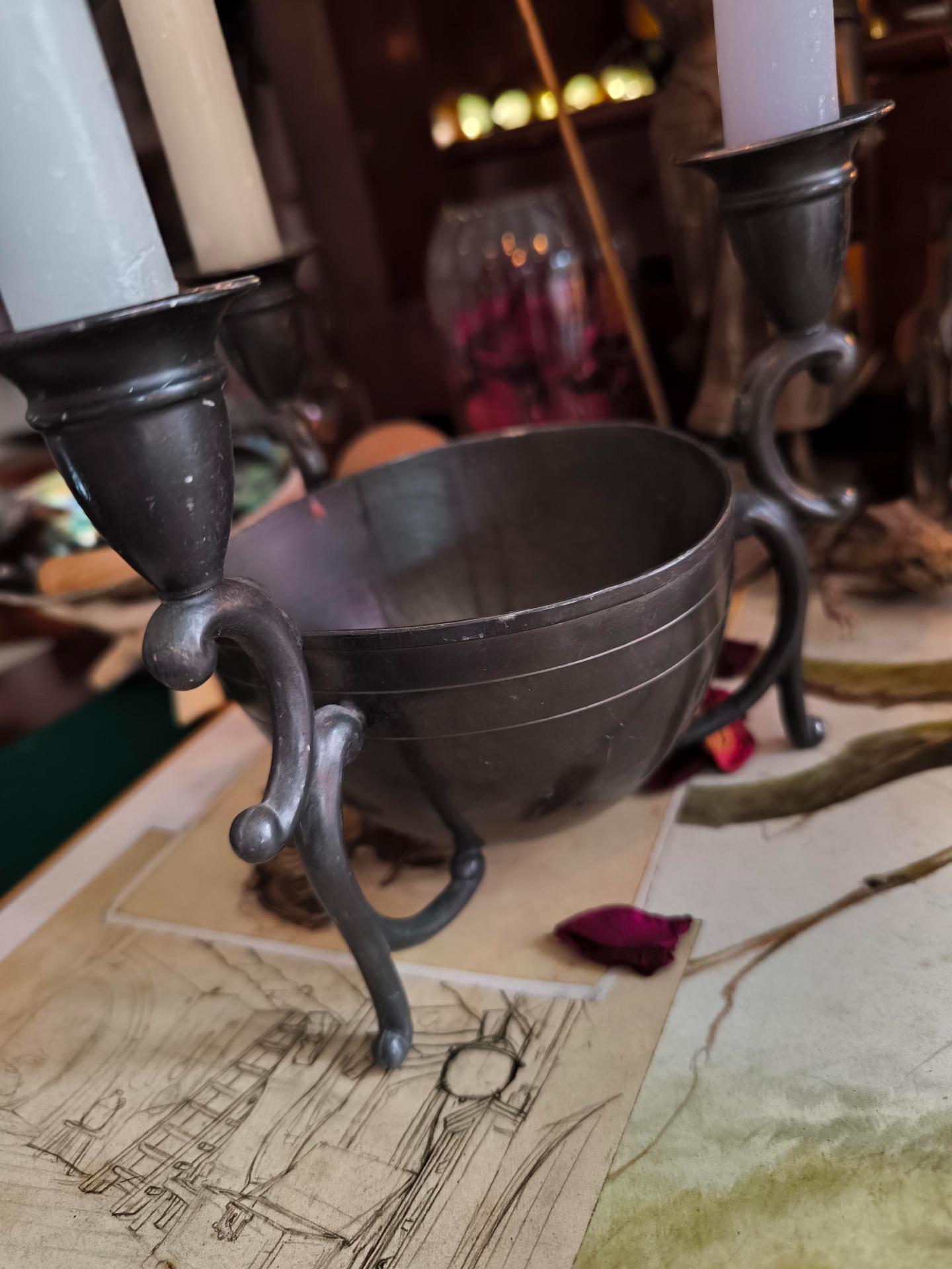 Le bol recueille les dons — herbes, pierres, pétales ou prières —