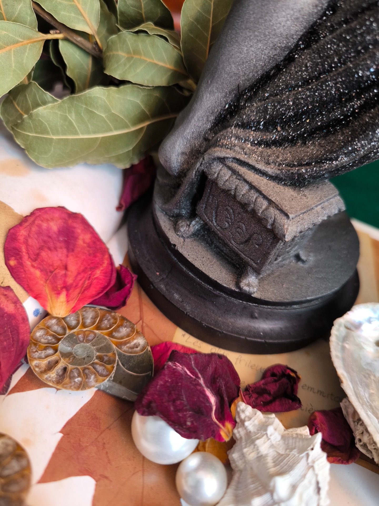 Placée sur un autel ou dans un espace sacré, elle devient une présence discrète mais magnétique, rappelant que la vraie beauté vient des profondeurs.